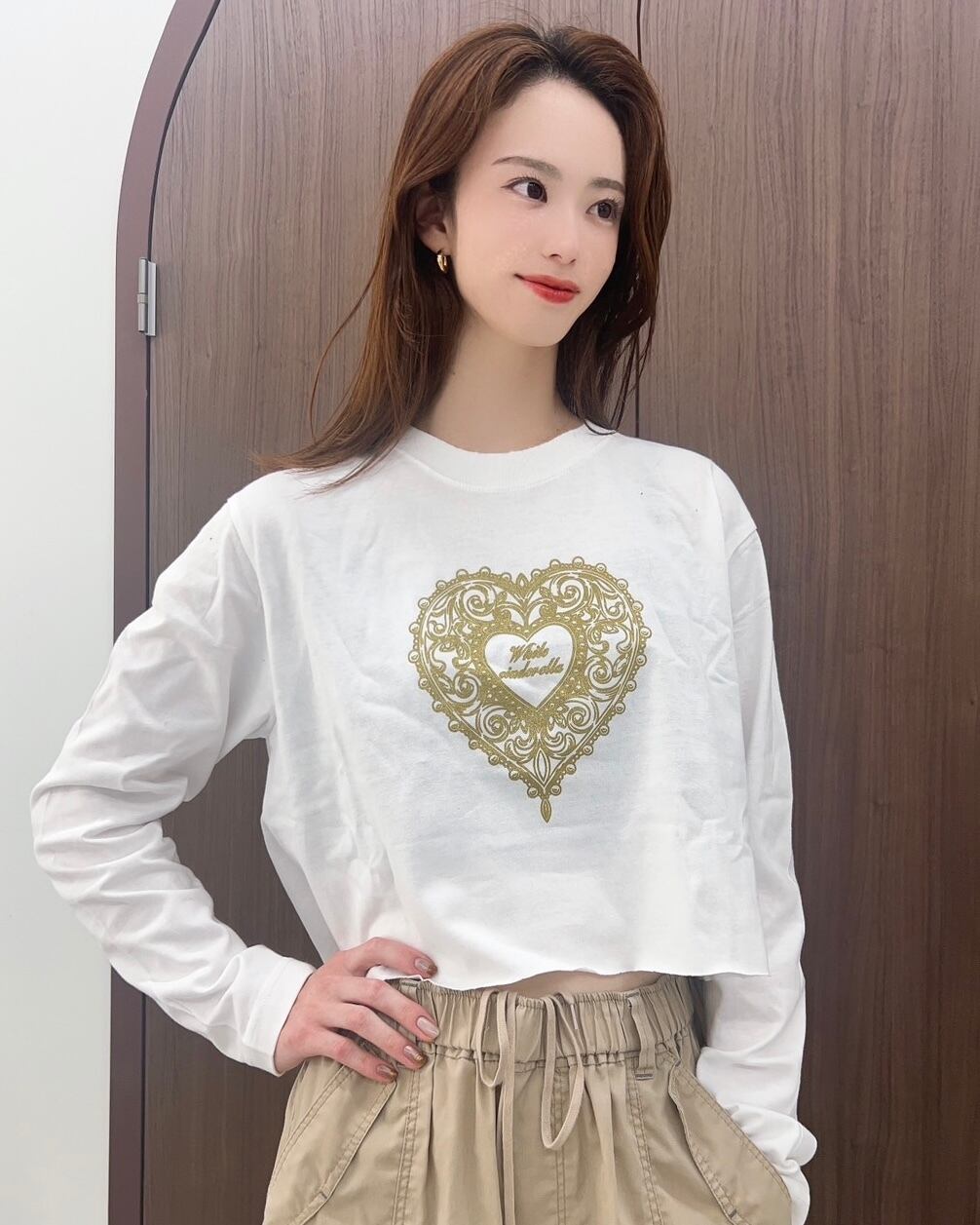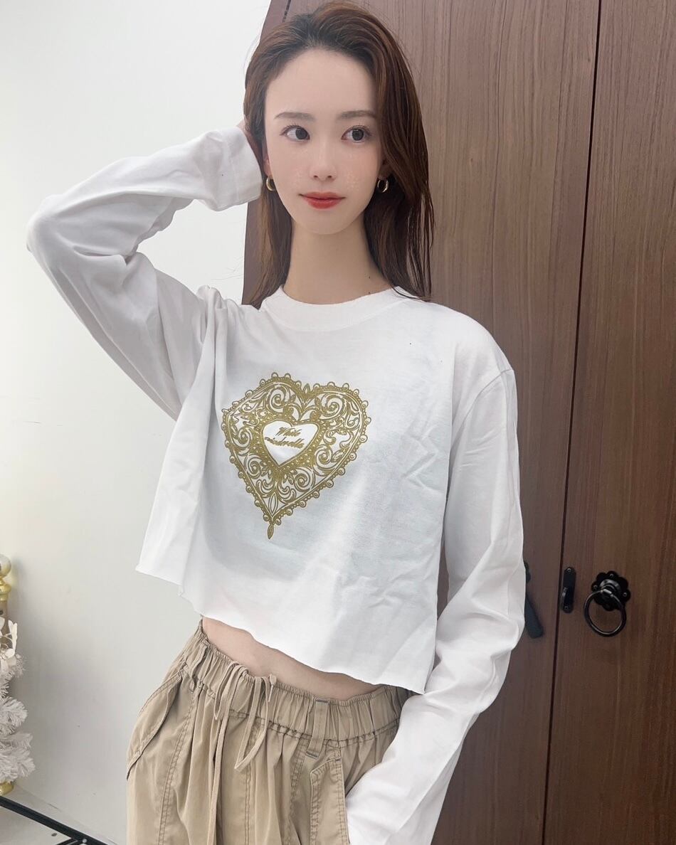 ハートフレーム クロップドロンT [白×ゴールドラメ]