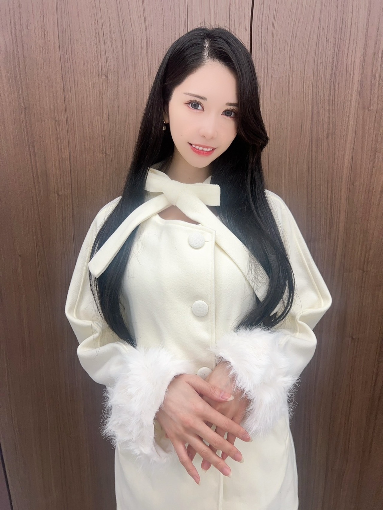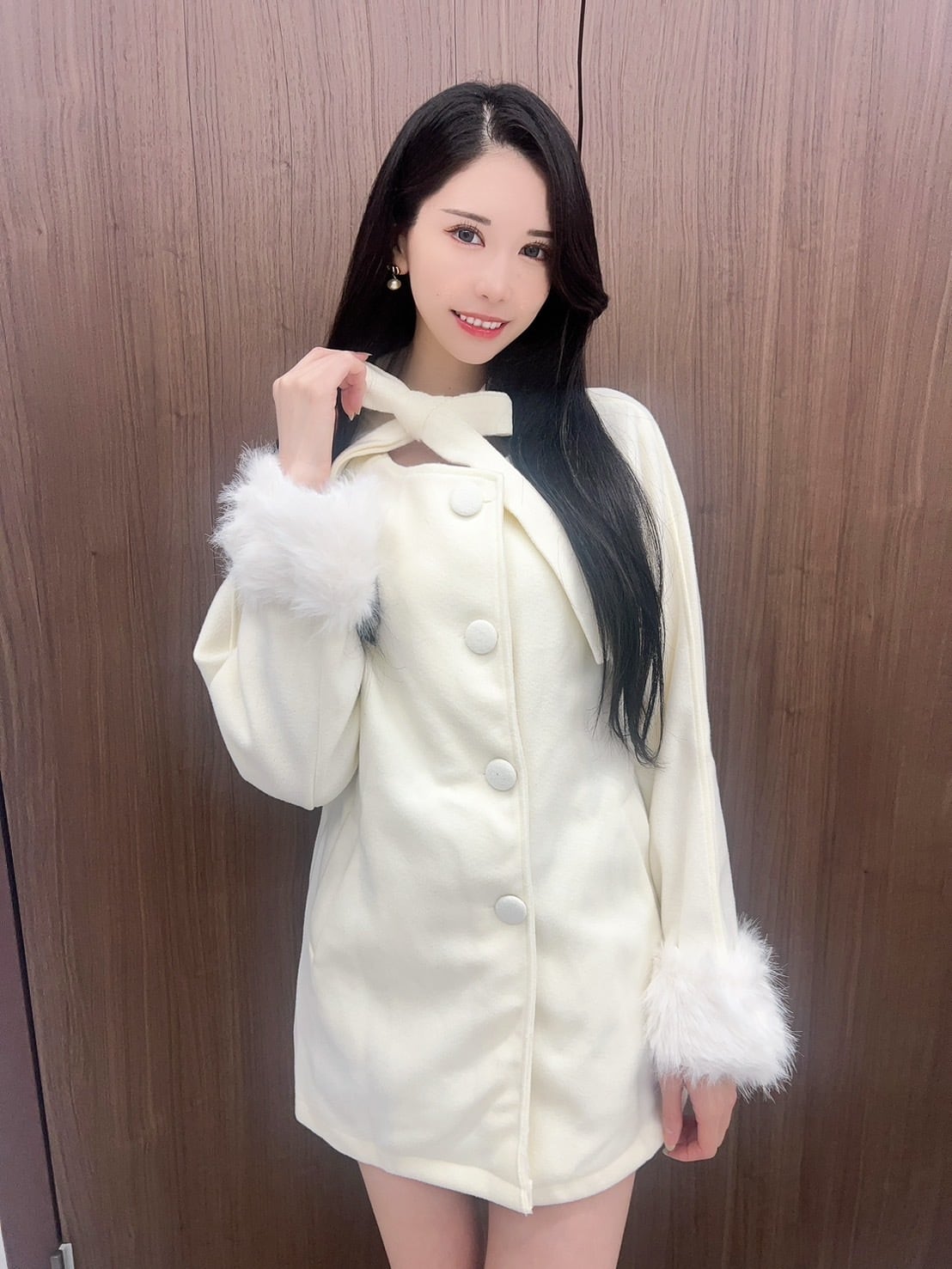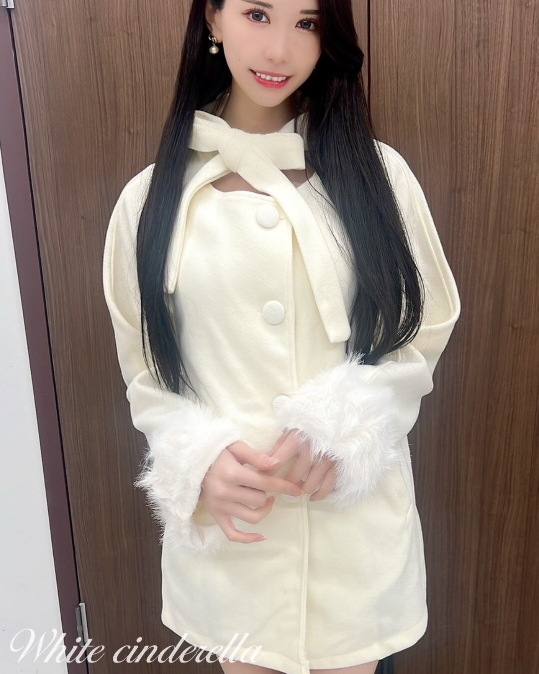可愛らしいリボンデザインがアクセントのコートです。羽織るだけで、一気にスタイリッシュな冬のコーディネートが完成します。
