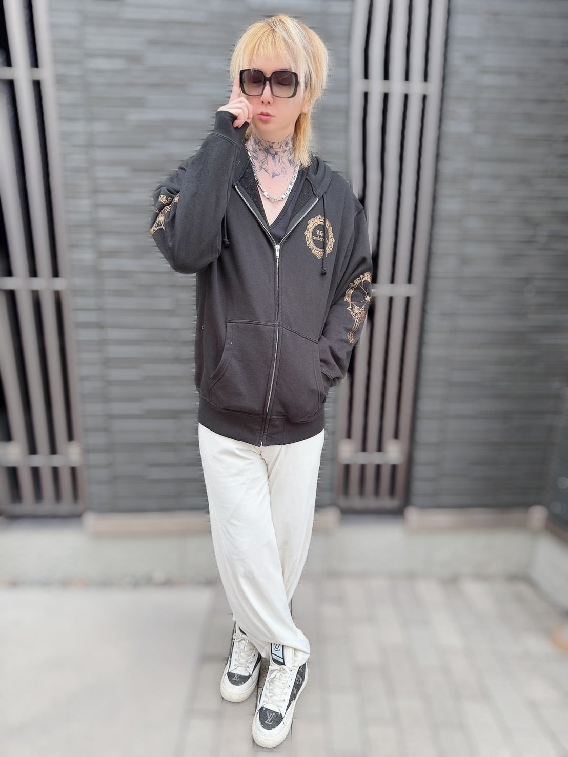 尾張の日向プロデュース ジップパーカー [黒×ゴールドラメ]