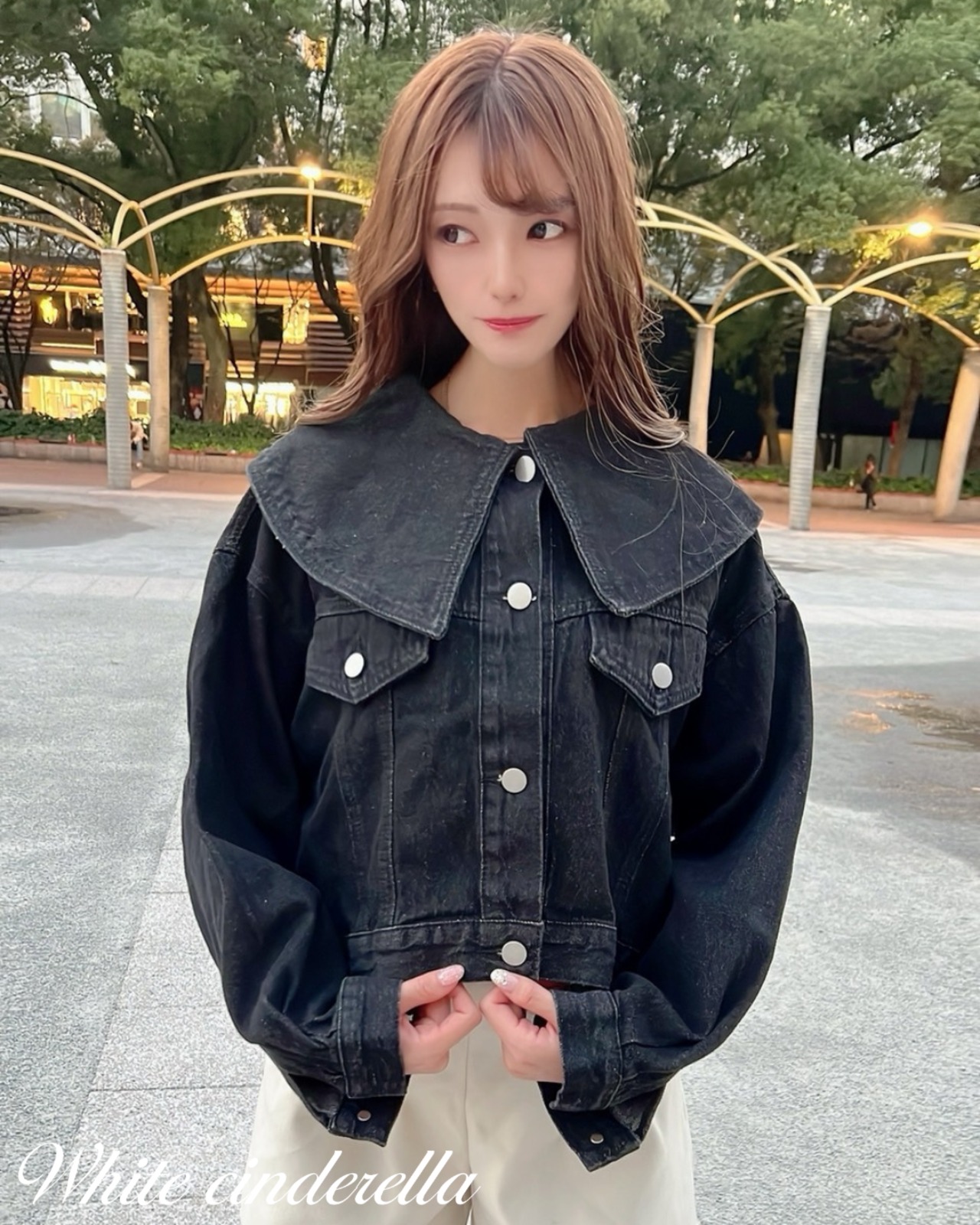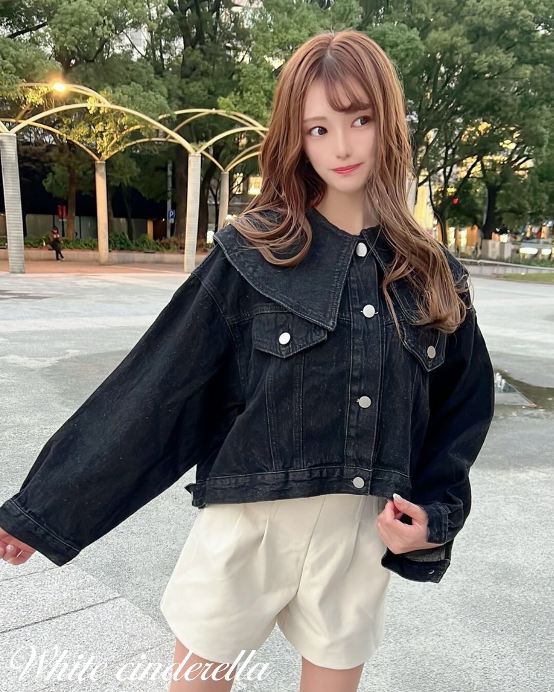 スタイリッシュなシルエットを演出するブラックデニムジャケット。クールな印象を与えつつも、どんなコーディネートにも万能に対応できる一着です。